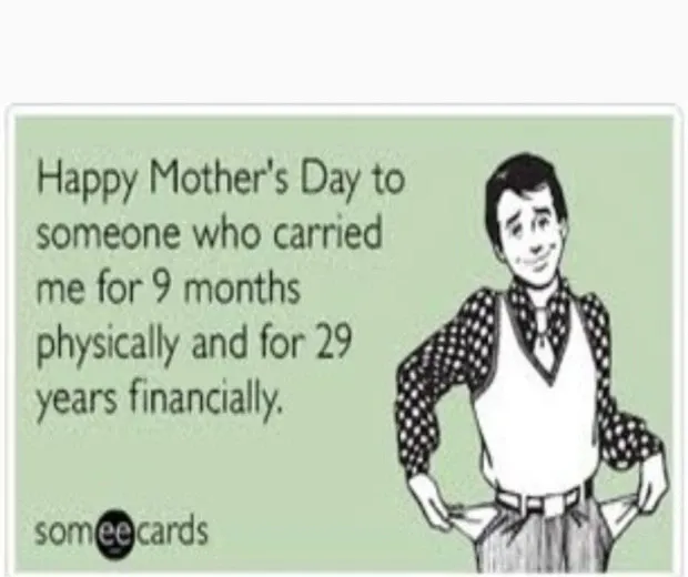 Laimīgu Mātes dienu kādam, kurš mani fiziski un 29 gadus finansiāli nesa mani 9 mēnešus.