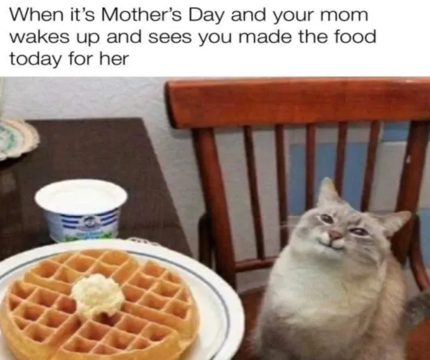 Kad ir Mātes diena, un jūsu mamma pamostas un redz, ka jūs šodien gatavojāt ēdienu viņai.