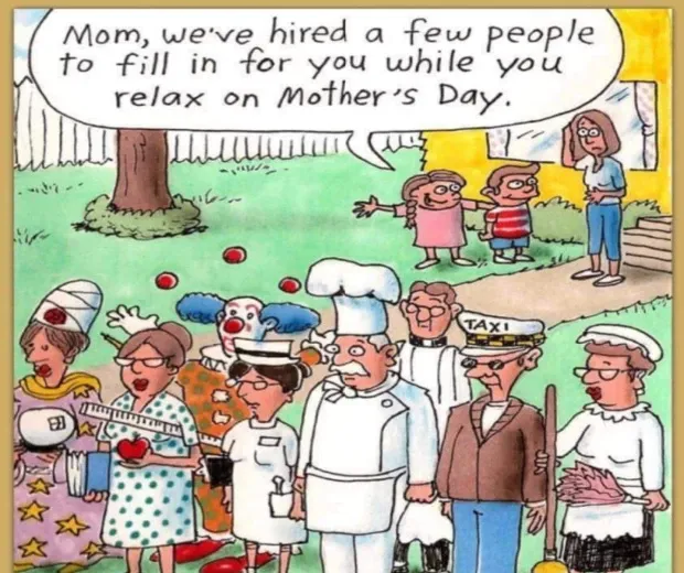 'Laimīga Mātes diena! Vai vakariņas vēl ir gatavas? '